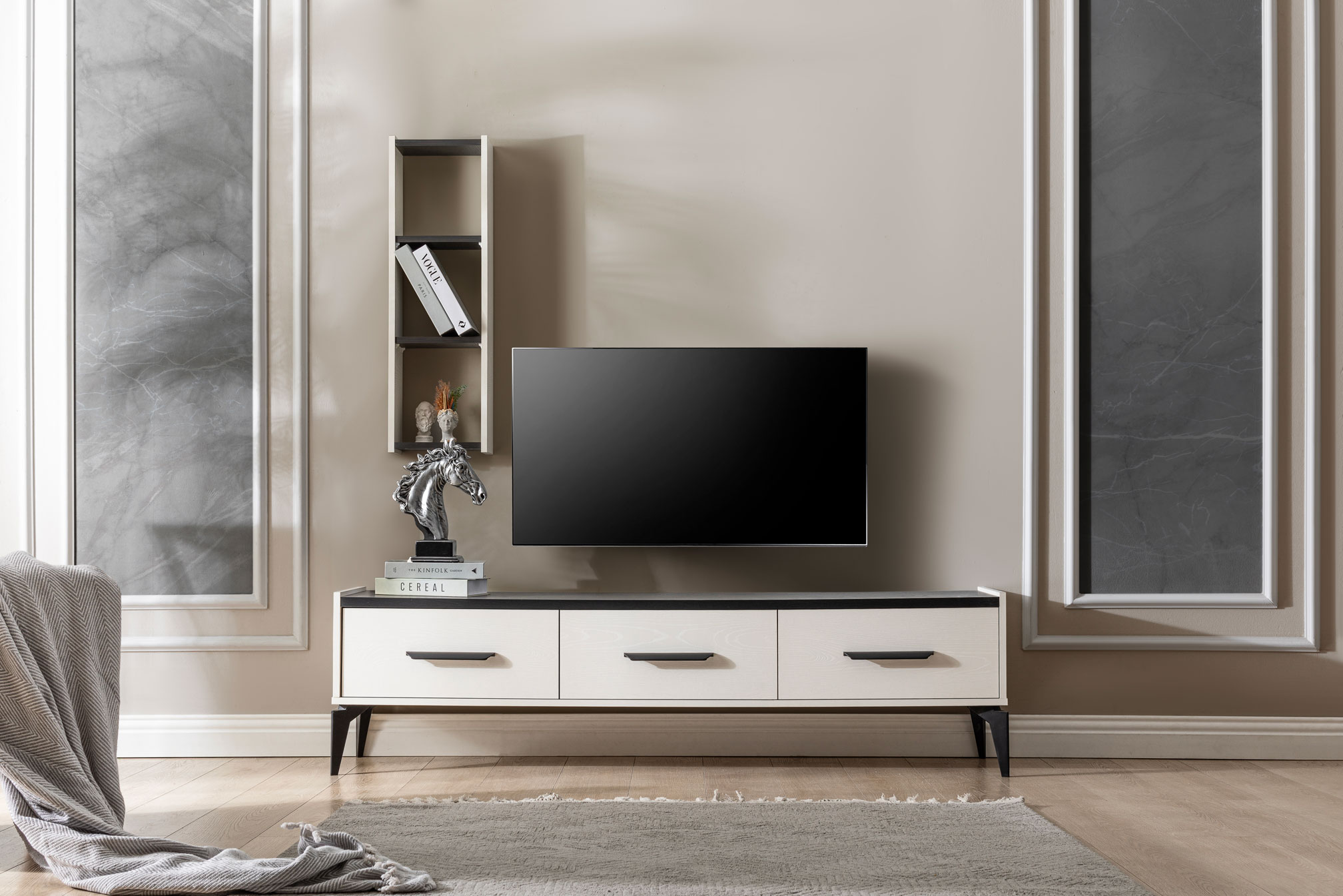 Koton TV Ünitesi, doğal ahşap dokusu ve minimalist çizgileriyle yaşam alanlarınıza huzurlu bir atmosfer katıyor. Geniş raf ve dolap alanları sayesinde hem düzeni sağlıyor hem de dekoratif eşyalarınızı sergileme imkânı sunuyor. Zamansız tasarımıyla her dekorasyon stiline uyum sağlayan Koton TV Ünitesi, doğallığı ve şıklığı bir arada arayanlar için ideal bir seçim.