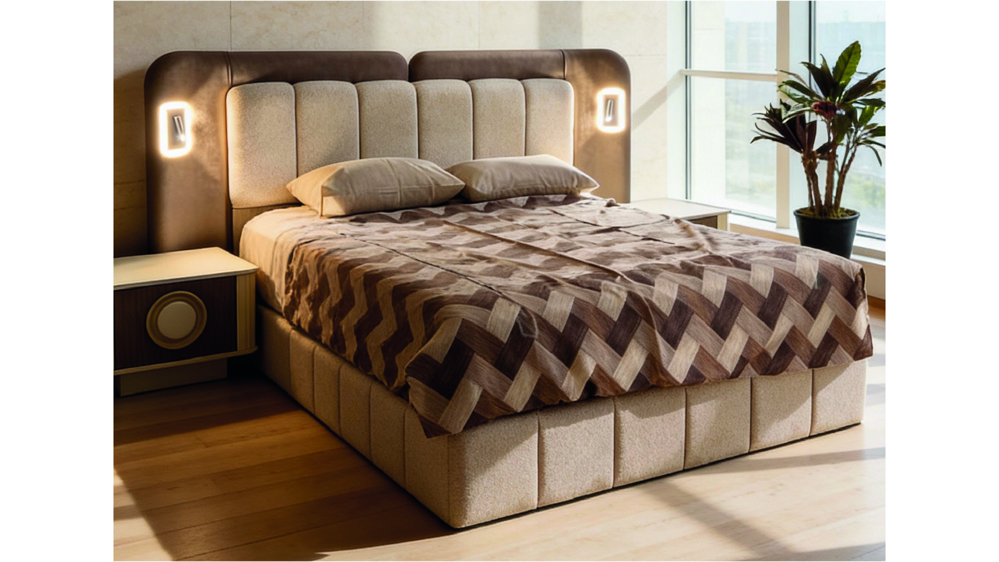 Milano Yatak Odası Takımı’nın baza başlığı, sade formunu tamamlayan entegre okuma lambaları ile fonksiyonelliği şıklıkla bir araya getirir. Başlığın sağ ve sol tarafında konumlanan bu aydınlatmalar, gece okuma anları için ideal bir kullanım sunarken mekâna sıcak ve dengeli bir ışık kazandırır. Temiz hatları, özenli döşemesi ve modern duruşuyla Milano, konforu estetikle buluşturan zamansız bir yatak odası atmosferi yaratır.